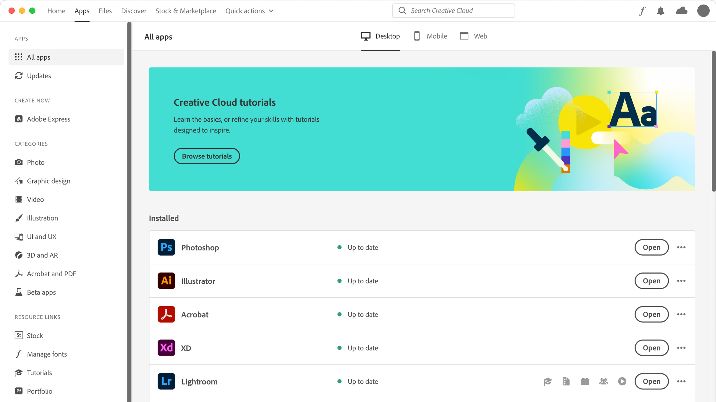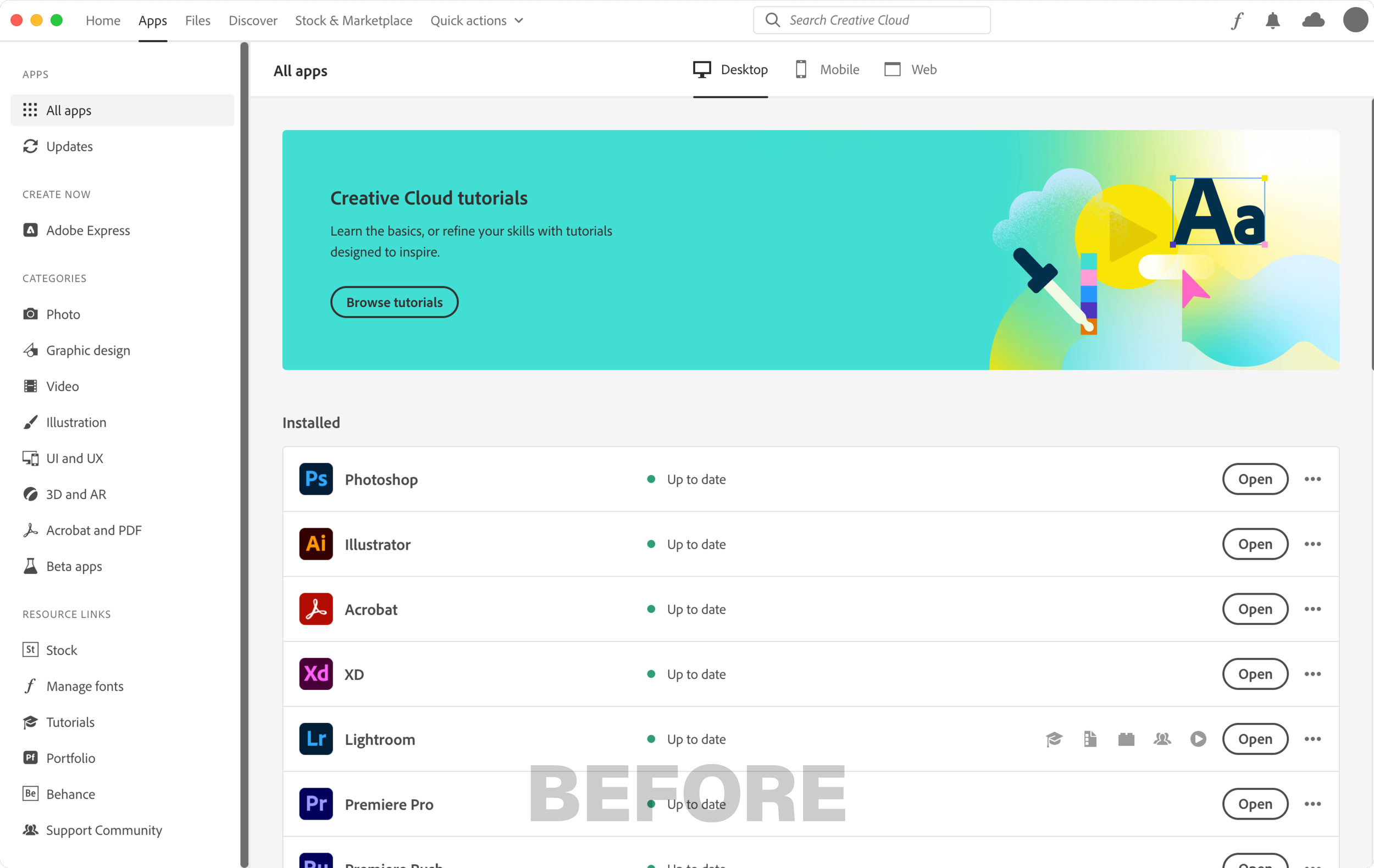 Creative Cloud Apps Catalog Redesign